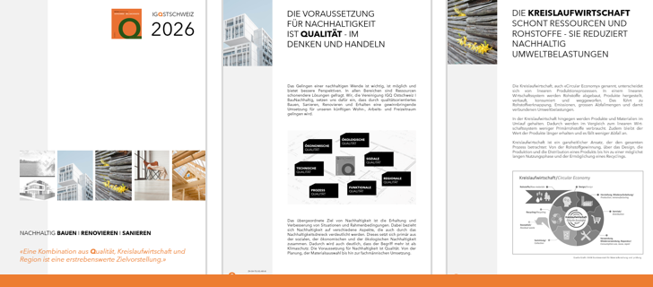 «Nachhaltig Bauen-Renovieren-Sanieren bedeutet, die Umwelt, die Wirtschaft und die Bedürfnisse der Gesellschaft zu berücksichtigen und dabei auch an die Lebensqualität folgender Generationen zu denken.»